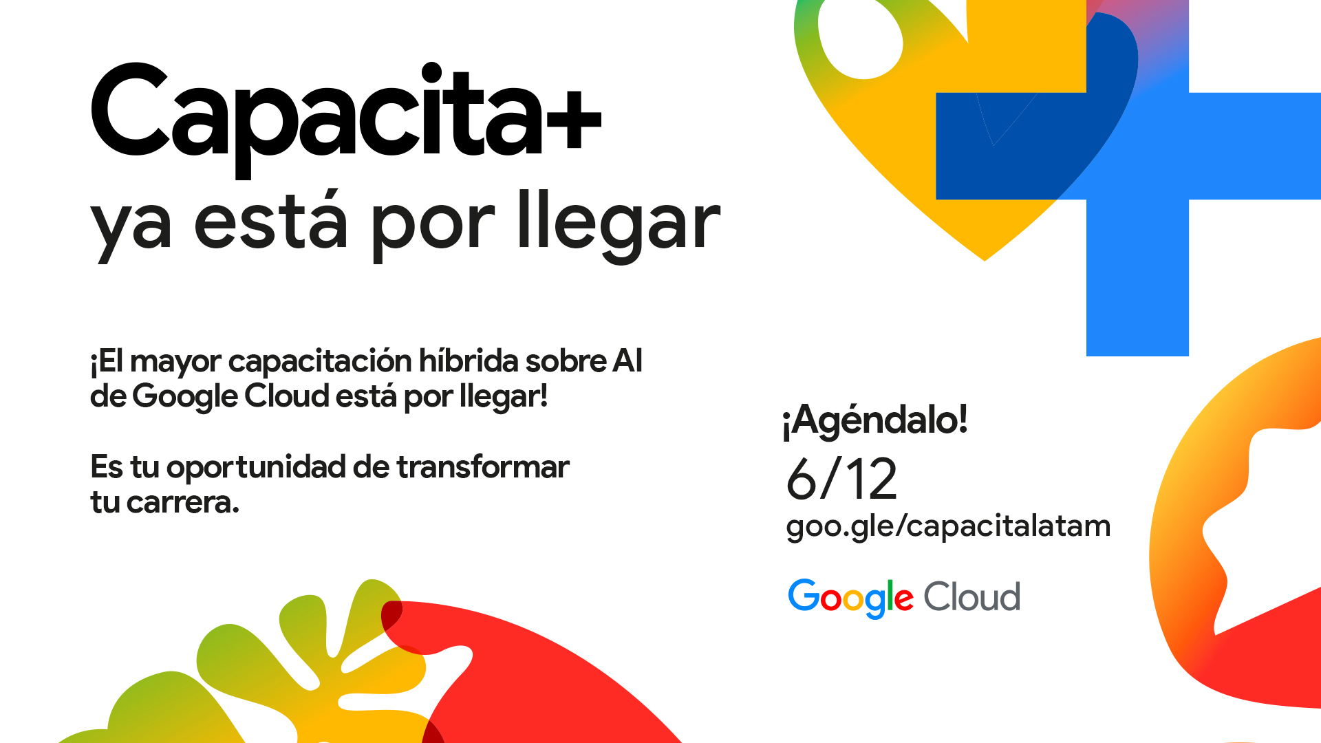 Capacita+: Aprende IA con Google Cloud es el mayor entrenamiento híbrido de inteligencia artificial de Google Cloud, donde los participantes descubrirán cómo la IA puede potenciar sus estudios y transformar su carrera.