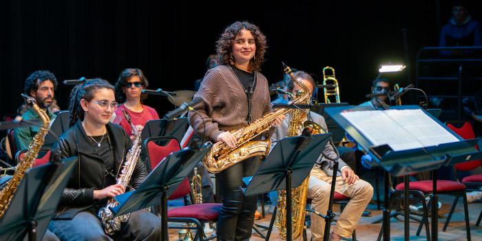 La orquesta de la Licenciatura en Jazz y Música Creativa de UTEC surge en el año 2022 impulsada desde la propia carrera como un proyecto artístico-académico. Su formato de ensamble se enmarca dentro de la tradición de las “big bands”, a la vez que, como una orquesta mixta con instrumentación variable, se abre a distintos tipos de músicas, estéticas y propuestas contemporáneas y latinoamericanas.